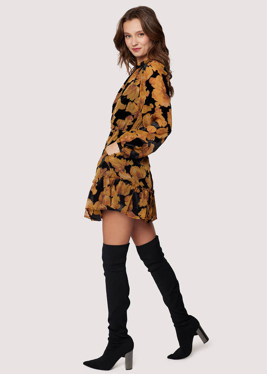 Mary-Ann Velvet Chiffon Long Sleeve Mini Dress