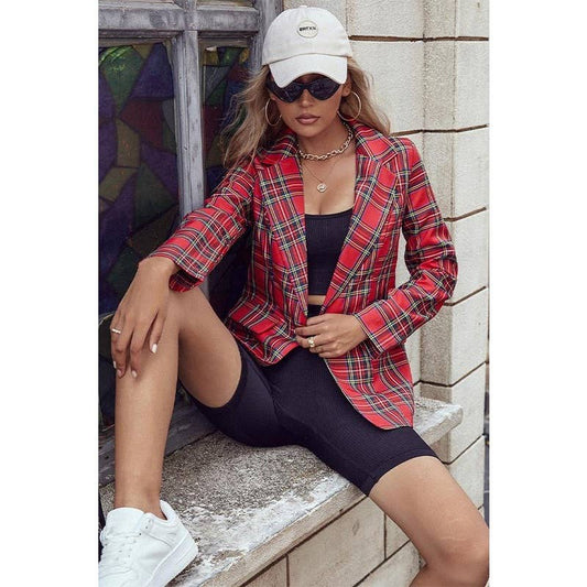 Christmas Red Plaid Blazer
