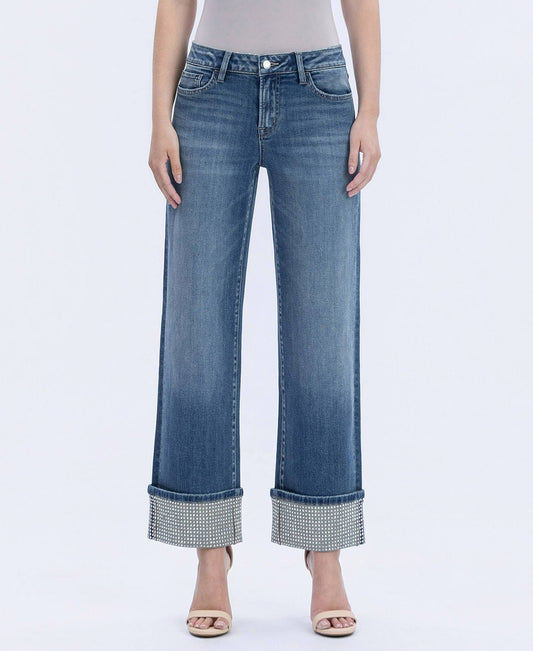 MID RISE MINERAL SILVER CUFFED SLIM WIDE JEANS