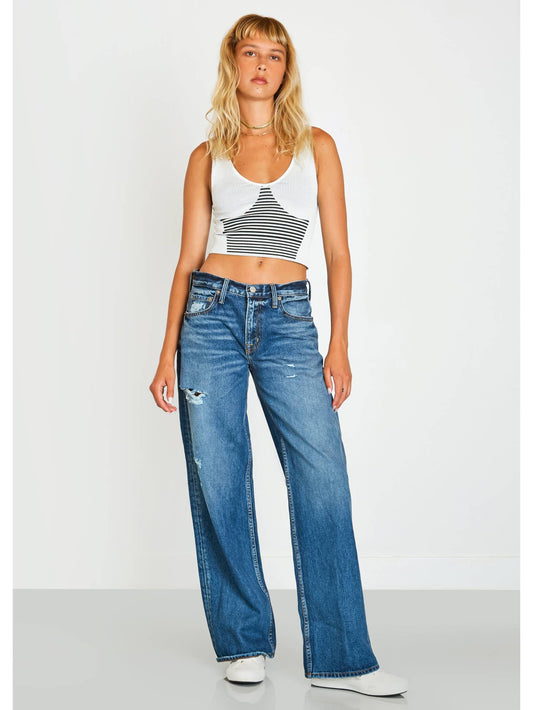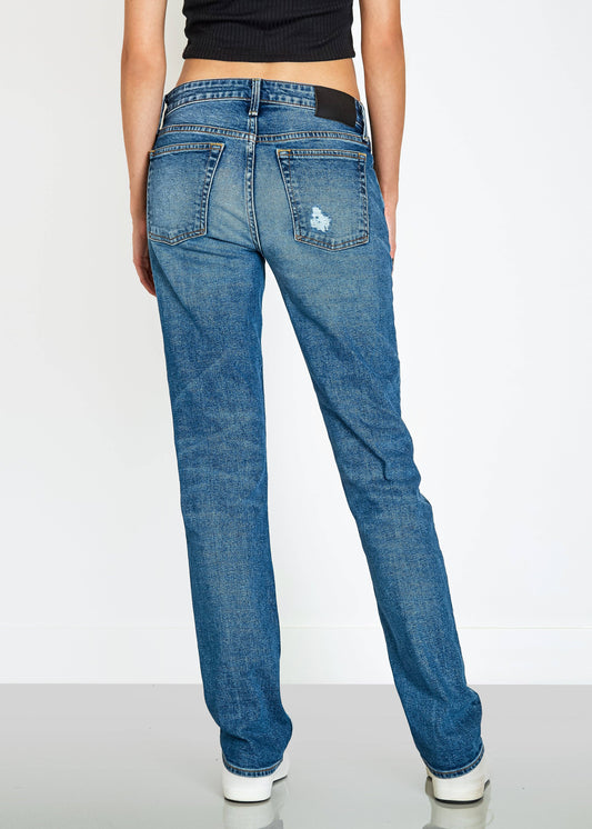 April Low Rise Loose Straight Jeans - Medium Blue Wash
