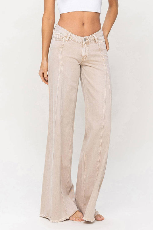 LOW RISE SEAM DETAIL BAGGY WIDE JEANS