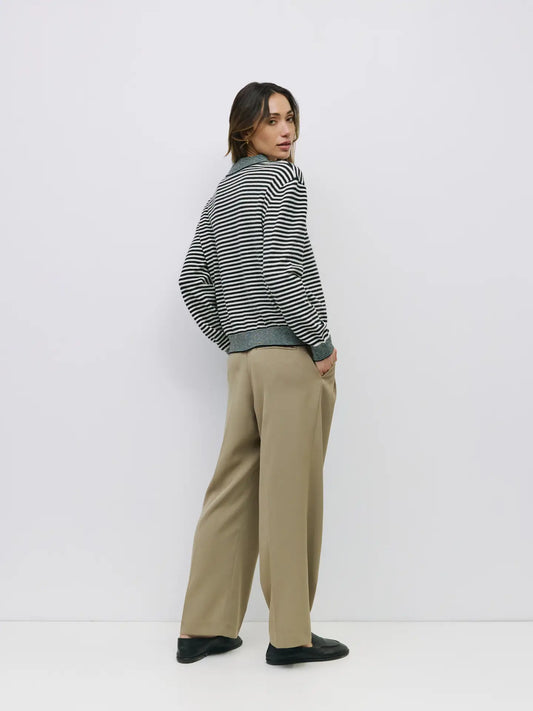 Knit Cotton Printed Striped Jersey Collar Pullover