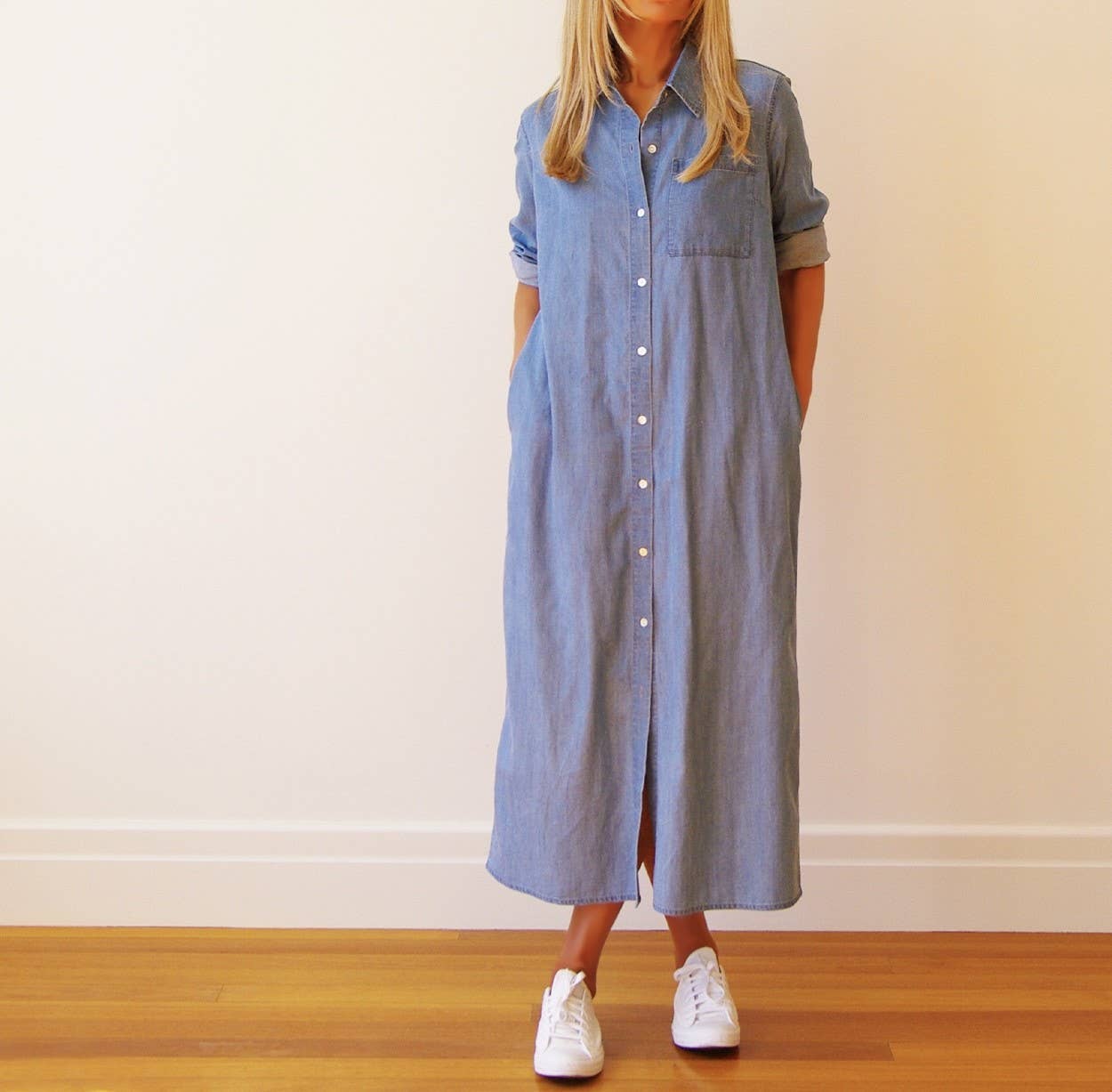 Belle - Chambray Blue Cotton Denim Dress. Relaxed True To Size Fit.
