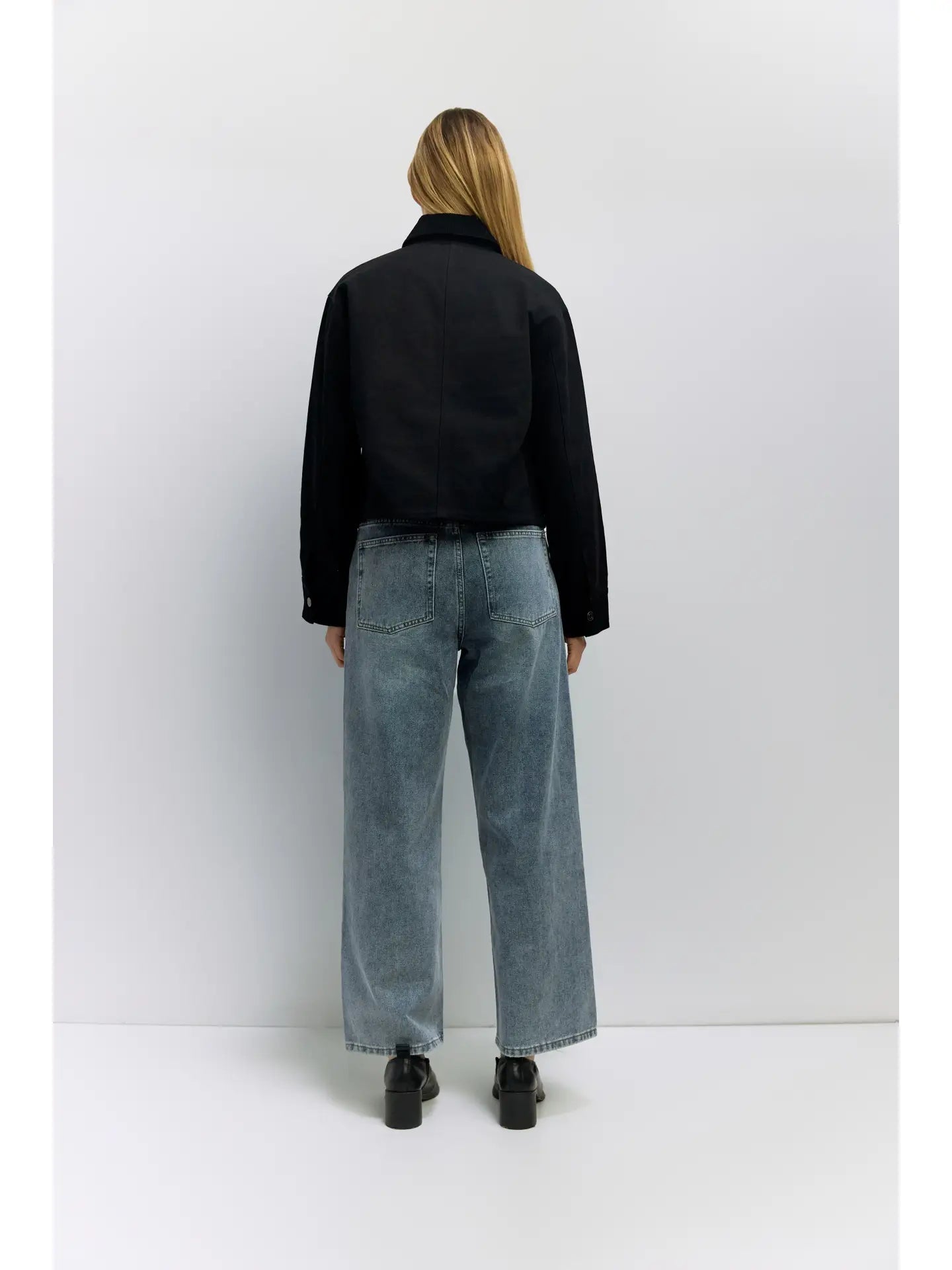 Crafted from heavy duck twill with a fully lined interior, the Laurel Jacket features a contrast crewneck collar, full zipper, and patch pockets with rivet details. Long sleeves with partial cuffs and back pleats offer ease of movement, while the relaxed fit blends practicality with contemporary style.